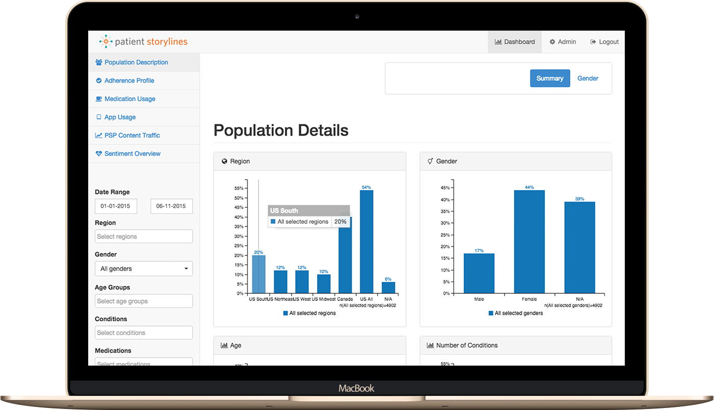 A turn-key patient self-care and marketing communications platform, with integrated research capabilities for capturing real world patient behavior insights.